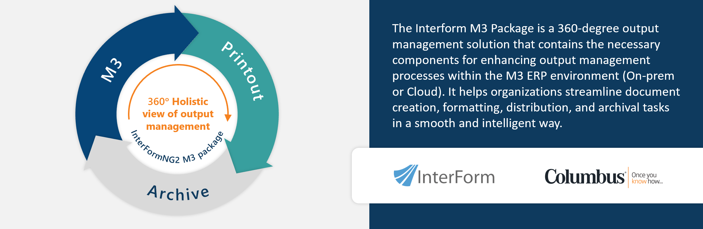 Columbus has entered a collaboration with InterForm, sharing the collective mission of future-proofing output management in M3 with the new user-friendly InterFormNG2 solution. Together, InterForm and Columbus have created an M3 package that includes standard document templates. However, InterFormNG2 can also be used across other systems, making it suitable for companies that use multiple systems